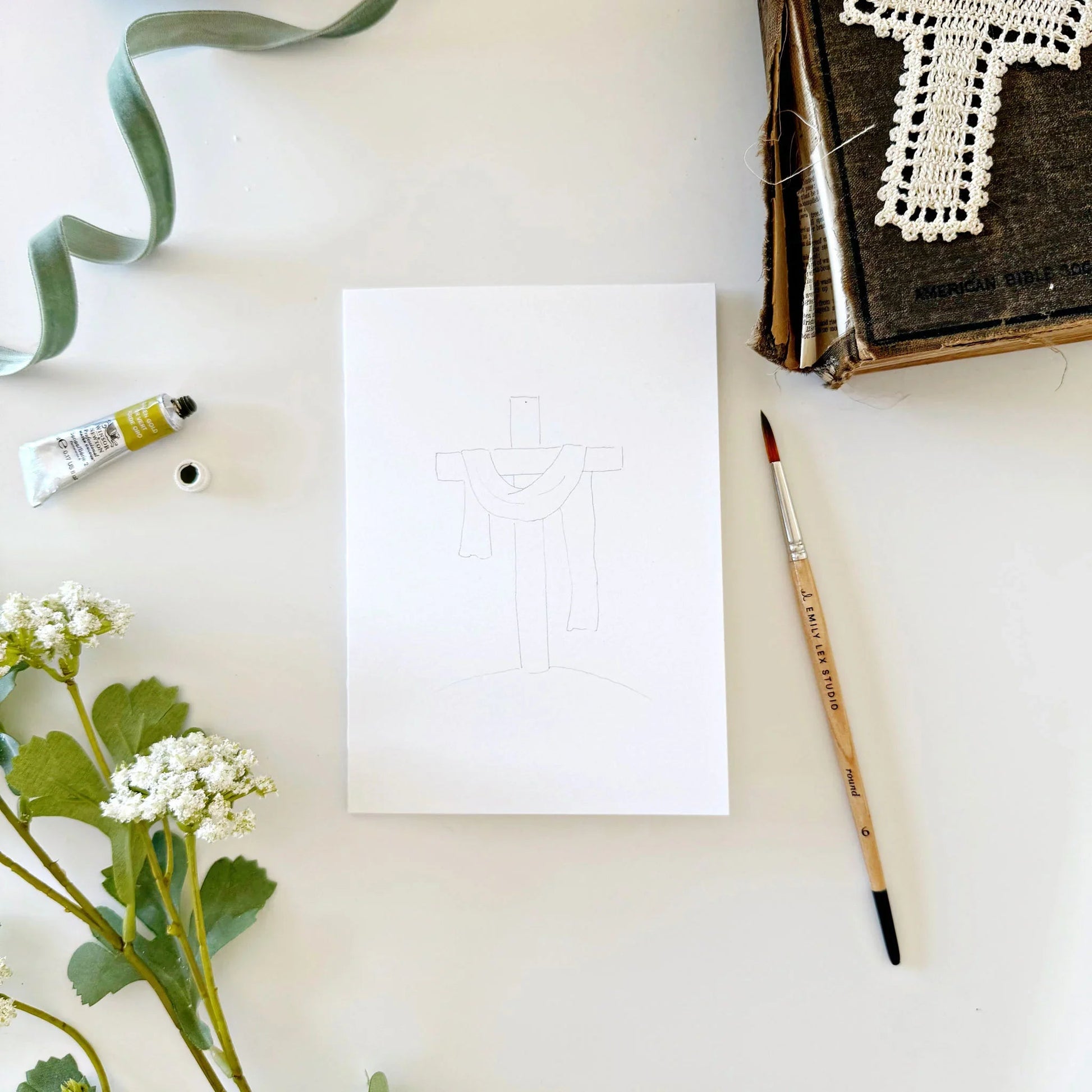 - two of each illustration lightly sketched for you to paint