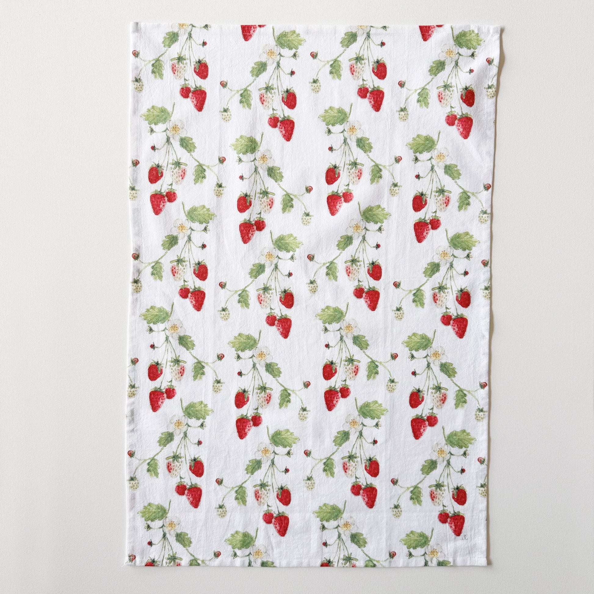 Add a touch of delight to your kitchen with this 100% cotton tea towel. A whimsical strawberry pattern covers the towel making it perfect for washing up, lining a basket, wrapping up a homemade treat, or displaying.